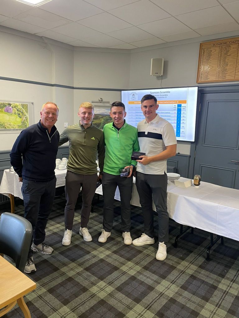 It was our pleasure to welcome some of our sponsors on Sunday 30th September to our Sponsors Scramble. Our winners on the day were the team of Declan Walsh, Kieran Boyd, Jordan Calder and Euan Crawford representing Barrhead Foot Clinic.
